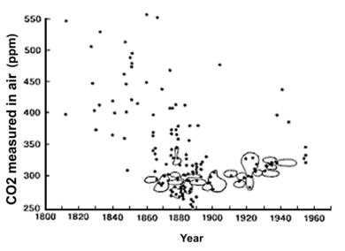 Ezek az adatok azért különösen fontosak, mert nem szelektáltak, és ezért mentesek a szelekciós eljárásokból eredő esetleges torzításoktól, ellentétben a Mauna Loán végzett eljárásokon alapuló CO2-mérésekkel (lásd alább). Megjegyzendő, hogy ezeket a méréseket ipari régiókban végezték, és ha ebben az időszakban egyre nagyobb mennyiségű antropogén CO2 halmozódott volna fel a légkörben, a mérések ezt kimutatták volna.